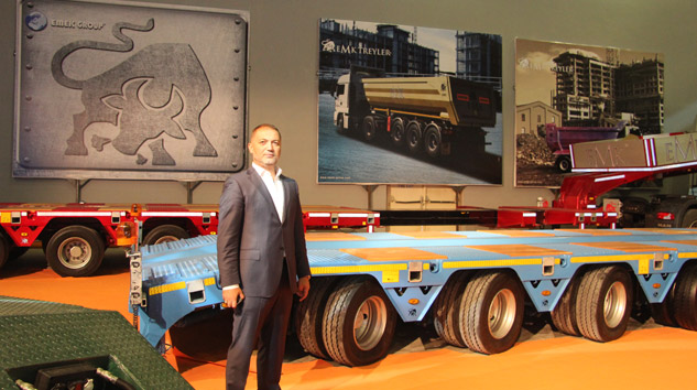 “10 değişik araç formatta araç için üstyapı geliştirebilen ilk Türk firmayız. Mühendis kadrolarımızın gücü ve Ar-Ge çalışmalarımız sayesinde EMK’nın, treyler pazarındaki önemli konumunu koruyoruz. Fuarda Avrupa Birliği 2014 uyum yasasına uygun patentli yeni ürünlerimizi sergileme fırsatı bulduk. Yeni nesil konteyner taşıyıcı ve 3 Aks ve 6 Aks hidrolik dümenlenebilir havuzlu Lowbed’den oluşan aracımız yurtiçi ve yurtdışındaki pazarlarda büyük ilgi görüyor. 3. Havalimanı projesi inşaatı için ilk araçları teslim ettik ve bu önemli projede tercih edilen marka olmanın gururunu yaşıyoruz.”