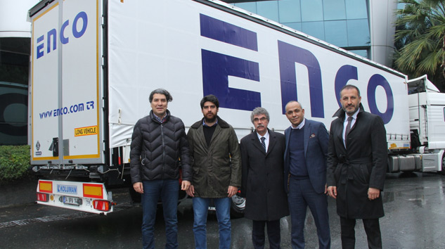 Son yıllarda Türkiye’de treyler alanında en büyük yatırımlarından birine imza atan Koluman, bunun sonucu olarak önemli lojistik firmalarının tercihi olmaya devam ediyor. 1985 yılında beri uluslararası taşımacılık ile başlayan Enco Grubu, Koluman’dan intermodal taşımalara uygun 100 adet Cargo Perdeli Huckepack treyler sipariş etti. 100 adetlik siparişin 30 adedi 30 Kasım tarihinde Enco tesislerinde düzenlenen törenle teslim edildi. Törene Enco İstanbul Ltd. Şti. Yönetim Kurulu Üyesi Beran Şahin, Genel Müdür İsmail Tekin, Koluman Motorlu Araçlar İcra Kurulu Üyesi Ali Saltık, Koluman Motorlu Araçlar Treyler Satış Müdürü Ekrem Artuç ve Koluman Motorlu Araçlar Kamyon Satış Müdürü Aytekin Yeşil katıldı. Düzenlenen araç teslimat töreninde Koluman Otomotiv yönetimi tarafından Enco yetkililerine teşekkür plaketi takdim edildi.
