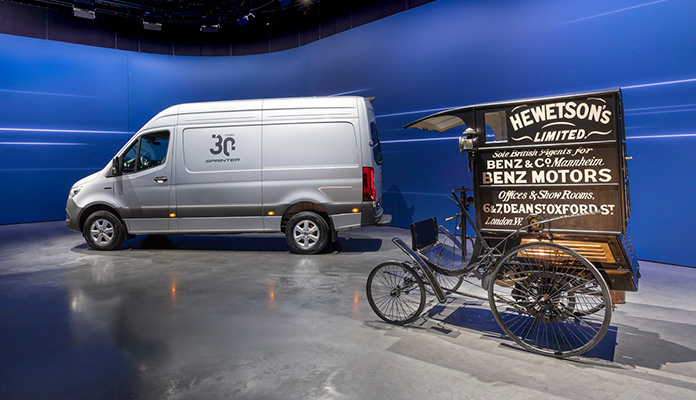Mercedes-Benz Hafif Ticari Araçların başarı hikayesi, 1896 yılında Benz & Cie. adı altında Carl Benz’in motorlu taşıyıcıyı icat etmesiyle başladı. Benz, farklı müşteri ihtiyaçlarını karşılamak için iki model geliştirdi. Benz teslimat aracı, Benz Victoria temel alınarak “kapalı kasalı bir araba” olarak tasarlandı. Benz kombine teslimat aracı ise daha küçük ve hafif Benz Velociped modelinden yola çıkılarak “sökülebilir kasalı küçük bir fayton” biçiminde üretildi. Sökülebilir kasası sayesinde, sadece birkaç basit adımda iki koltuklu bir binek araca dönüştürülebiliyordu. Bu özelliğiyle son derece çok yönlüydü ve aslında ilk çok amaçlı araç olarak kabul edilebilir.